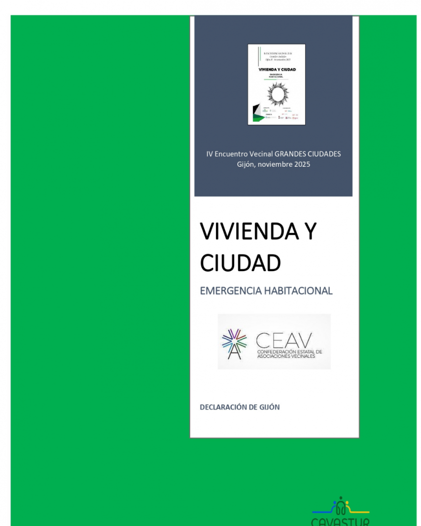 Ya disponemos de la documentación del IV Encuentro Vecinal de Grandes Ciudades, celebrado en Gijón los pasados 15 y 16 de noviembre. Puedes descargarla aquí.